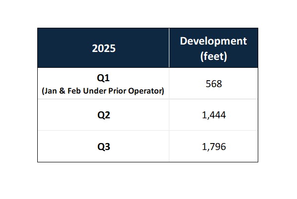 - Underground development during the quarter totalled 1,796 feet and continues to be prioritized in Q4 to provide increased production optionality and flexibility to support a more robust operating plan in 2026.