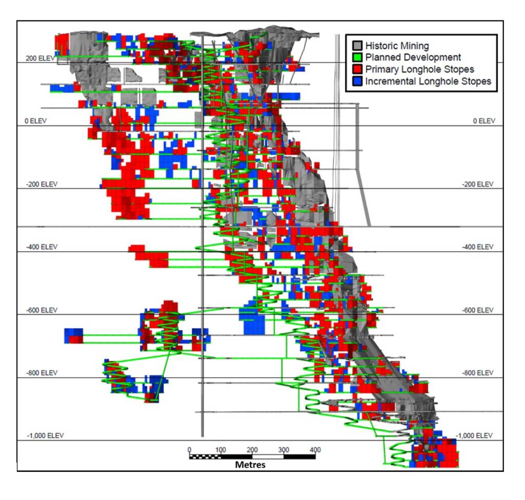 Figure 2: Crean Hill Longitudinal Section Showing the 2024 PEA Underground Design